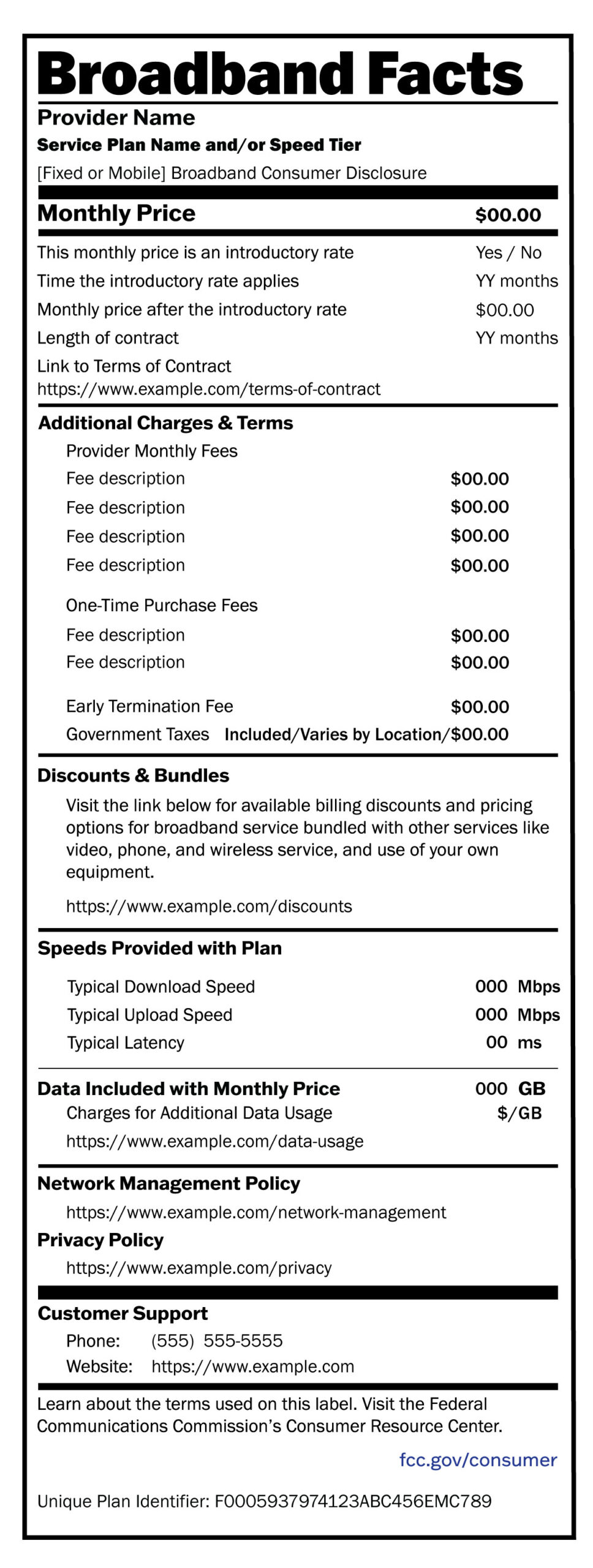 Modeled after FDA nutrition labels, broadband labels help you, the consumer, compare internet service plans and select the best one for your needs and budget.